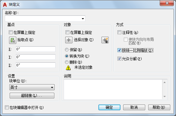 指定新块中要包含的对象,以及创建块之后如何处理这些对象,是保留还是删除选定的对象或者是将它们转换成块实例。