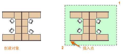 请注意,插入块时,它将在指示的点处附着到光标。此位置称为插入点。默认情况下,插入点是原始图形的原点 (0,0)。