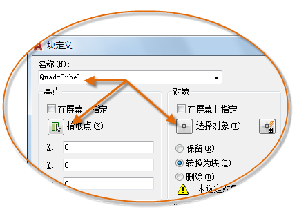 用户可能希望直接在当前图形中创建块定义,而不是创建要作为块插入的图形文件。如果不打算将块插入到其他任何图形,请使用此方法。在这种情况下,请使用 BLOCK 命令来创建块定义。