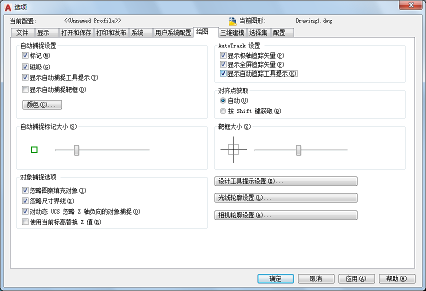 设定多个编辑功能的选项(包括自动捕捉和自动追踪)。