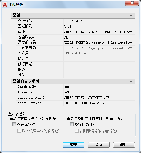 显示选定图纸的特性。还显示自定义特性(如果有)。可以输入新值以修改任何图纸特性。“需要的布局”是保存图纸的图形的路径和文件名。“找到的布局”是在其中找到图纸的图形的路径和文件名。如果需要指定其他路径,可以在“预设的布局”中修改路径和文件名。此操作将图纸和图纸集重新关联。