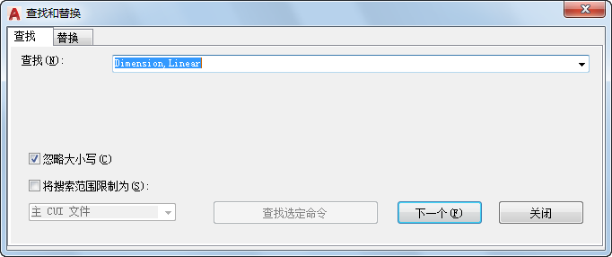 CUI(命令) 查找:查找命令或文字