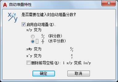MTEXT(命令) 查找:在“在位文字编辑器”中选择堆叠分数 > > “堆叠特性” > “自动堆叠”
