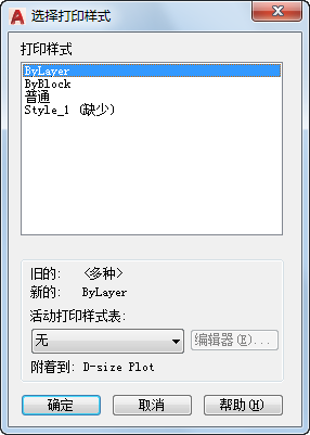 设置当前图形附着的打印样式表。打印样式表用于定义打印样式。