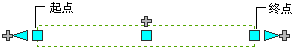 起点夹点和终点夹点可修改管段的起点或终点的 XYZ 位置。最初设计风管管路时,这些夹点特别有用,因为可以使用它们轻松地将管段连接到现有管路。