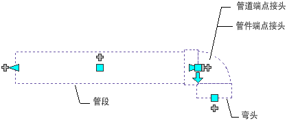 管道接头(卡箍连接除外)位于管段和管件的端点。在图形中,软件会将连接到管件的管道显示为附着到管件的端点。但是,在实际管线中,管道将插入到管件中。