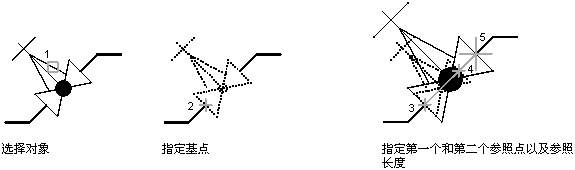 可以按参照调整图例的尺寸。按参照调整尺寸时,会将图例的当前长度指定为新长度的一个参照。例如,如果图例的一个边为 2.5 个单位长,且您希望将它延长到 3.5 个单位,可以将 2.5 用作参照长度,并将 3.5 用作新长度。还可以通过指定一个基点和两个参照点并拖动图例来进行缩放。