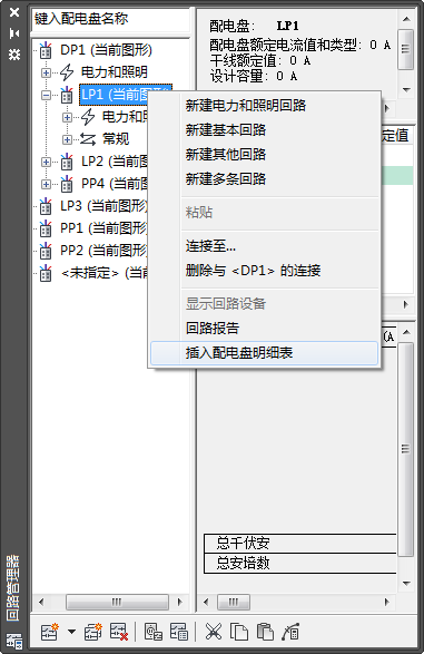 使用电路管理器在当前图形中生成配电盘明细表