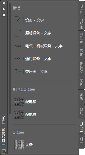 - 在“电气”工具选项板集中,单击“标记和明细表”选项板。