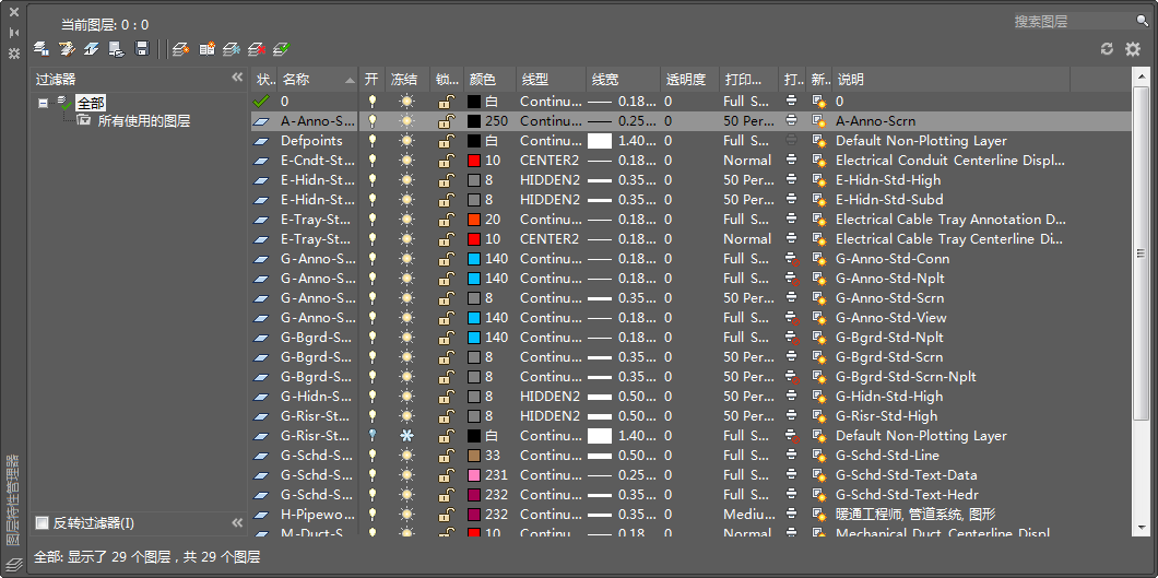 使用图层特性管理器可以查看和管理当前图形中的图层。