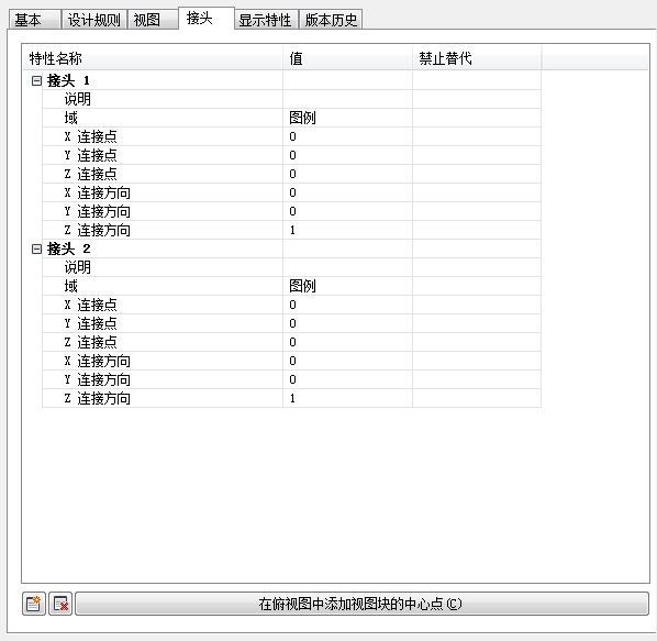 脚本中的“接头放置”特性不显示在该选项卡上。在“样式管理器”中,仅可以使用如图所示的选项,通过输入 X、Y 和 Z 坐标指定接头位置,或者通过将接头放置在块的中心进行指定。