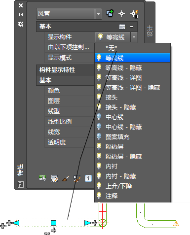 用户可以配置这些显示构件,以显示或隐藏下列 AutoCAD MEP toolset 对象(在与楼层平面和剖切面相对的位置):