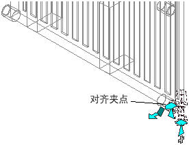 通过对齐多视图零件和对象的接头,并将多视图零件放置到正确的方向,可使用对齐夹点 将一个多视图零件连接到另一个对象。对齐夹点使您能够准确地将一个散热器阀门移动到散热器的另一侧。