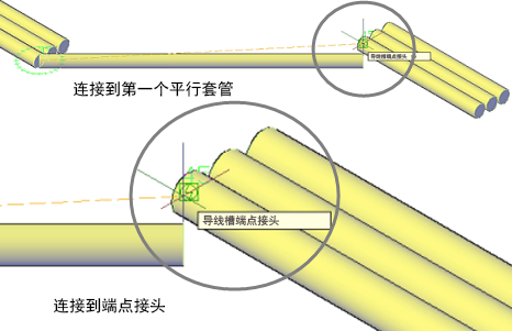 - 选择平行套管或管道。确保已选择套管或管道上的端点接头点。