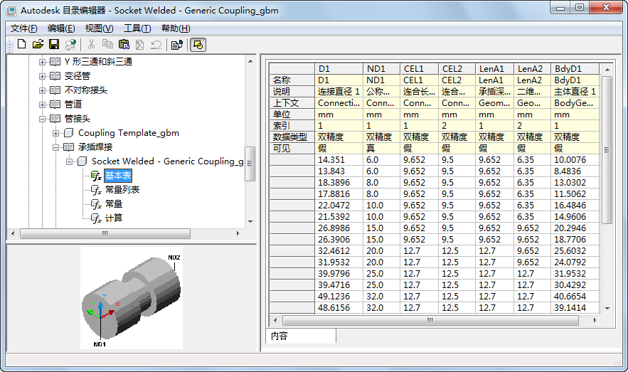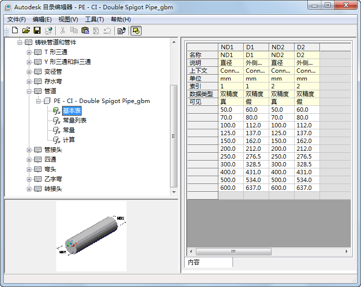 管道零件目录包含数千种尺寸的管道零件。管道域包括下列零件类型: