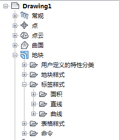 可以在“工具空间”中的“设定”选项卡上的“地块”集合中查看可用的地块样式: