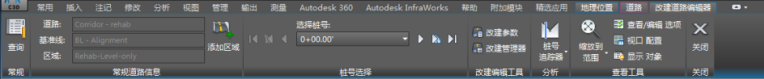 “改建道路编辑器”功能区选项卡