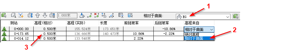 要素线可从曲面获取其高程,并与该曲面保持相对关系,或者其高程可以为绝对。