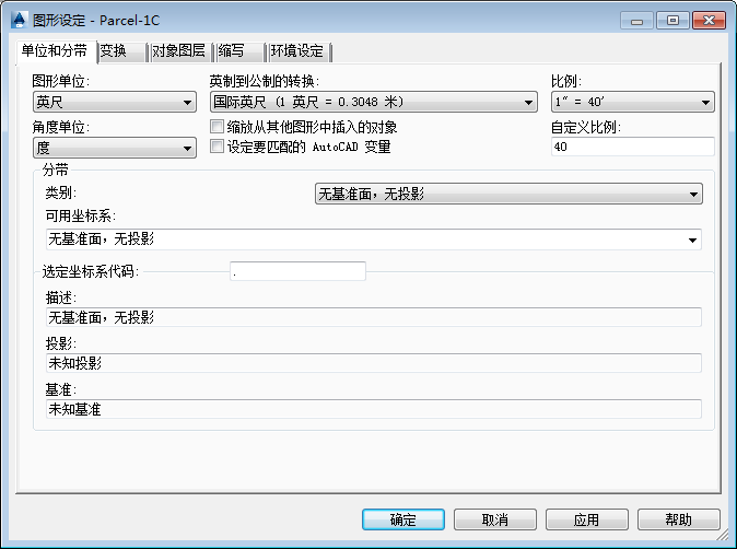 选择初始模板后,下一个逻辑步骤是查看和编辑设置。在“工具空间”的“设定”选项卡上,于图形名称上单击鼠标右键,然后单击“编辑图形设定”。“图形设定”对话框包括五个选项卡及多个设置。