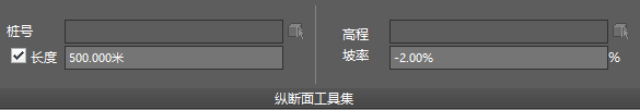 在创建和编辑纵断面时,使用“纵断面工具集”透明命令指定桩号、高程、坡率或长度值。