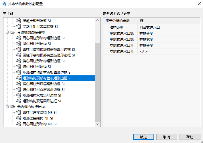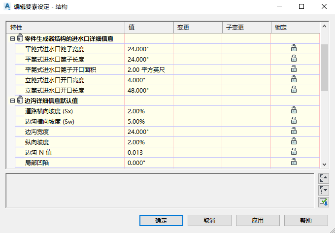 有关详细信息,请参见关于分析和调整重力管网尺寸和“编辑要素设定 - 结构”对话框。