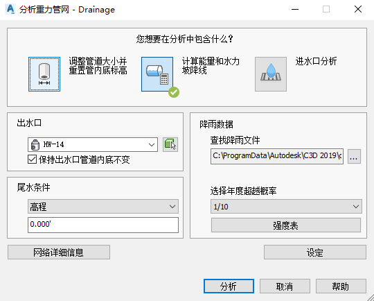 有关详细信息,请参见关于分析和调整重力管网尺寸。