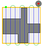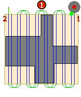 无接触(未显示) 加工路径在同一 Z 层上不相连。刀具在每个连接加工路径之间退刀。 |