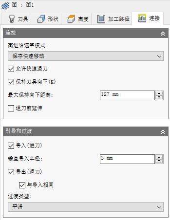 当刀具从进刀移动转到刀具路径本身时垂直弧平滑的半径。