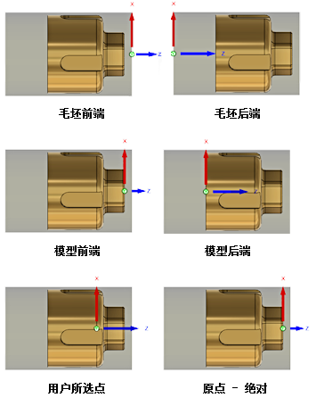 显示为深绿色,“从”用于设置退刀参考位置。此参考可以相对于毛坯、模型、指定半径、直径或任何其他径向位置。可以使用正或负偏移值来偏移该参考位置。