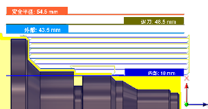 显示为浅蓝色,它用于定义切削区域的最大径向边界。外半径用于定义您计划要加工的外部毛坯曲面。