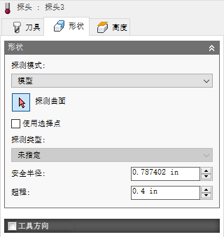 可以选择从“模型”或“毛坯”中选择面。“探测”选项将随着您的选择而变化。