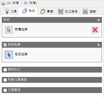 ![]() 无 无加工余量 - 移除选定形状以外的所有多余材料。 |