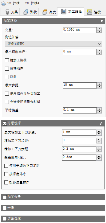 应用于粗加工路径的最大平滑量。使用该参数可以避免在刀具路径中出现锐角。