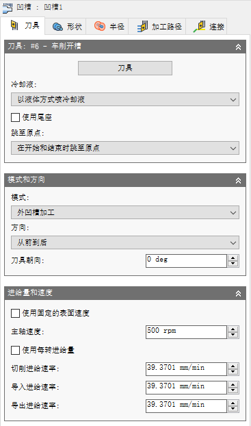 凹槽加工策略用于使用凹槽刀具对零件进行粗加工和精加工。
