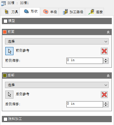 对于精加工操作,通常将默认值设置为 0 毫秒/0 英寸,表示不剩余材料。