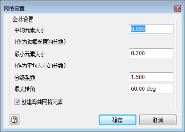 使用“网格设置”可手动控制平均元素大小、最小元素大小、分级系数和最大转角。