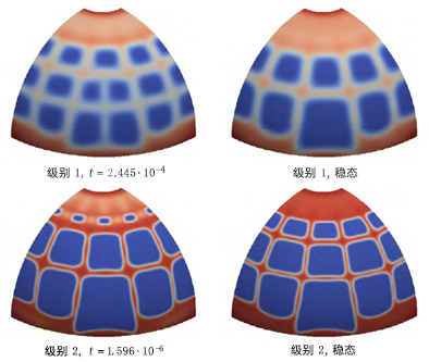 使用形状生成器,我们能够重新生成发布的结果。尽管大部分生成的结果与发布的结果相一致,但在该半球的底边上存在一些显著的差异。在形状生成器结果中,应用边界条件的位置仅剩余很薄的一层材料。发布的结果显示围绕该半球底边有一条较厚的材料带。发布的结果还显示此材料带的厚度有一些差异,这可能是由于使用了对称边界条件。