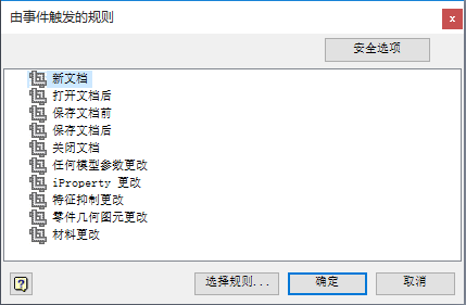 • RulesOnEvents.xml 位于“iLogic 配置”对话框中指定的第一个外部规则目录中。