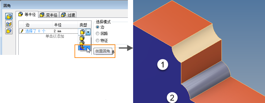 自动过渡是一种重新过渡技术,可自动移动相邻的相切面,还可以创建新过渡(如果需要)。当移动或旋转面时可用。
