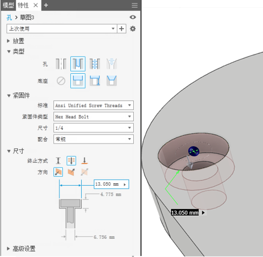 新的“孔”命令可以根据您的交互推断孔放置,因此更快速、更智能。无需先创建草图,即可应用尺寸和同心约束。然后,在特征编辑和草图编辑之间切换,而无需退出该命令。