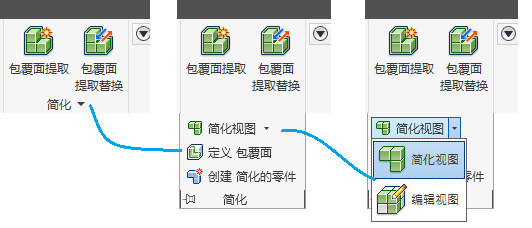 访问:可以在“简化”面板中的“部件”选项卡上直接访问包覆面提取。