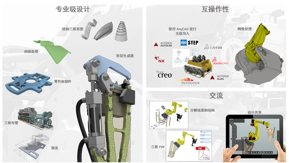 Inventor 2016 引入了使用名为 AnyCAD 的技术将非原生几何图元关联链接到 Inventor 模型的方法。在 Inventor 2017 中,为 CATIA、Solidworks、NX 和 Pro-E/Creo 文件显著提高了参考模型更新行为。提高了对导入工作流中多线程的支持,从而提高了参考模型工作流的性能和更新速度。同样,参考模型还支持 STEP 中性文件格式。可以在 Inventor 部件中参考 STEP 模型。当 STEP 文件更新时,用于设计的 Inventor 帐户以类似于其他三维格式的形式进行更改。