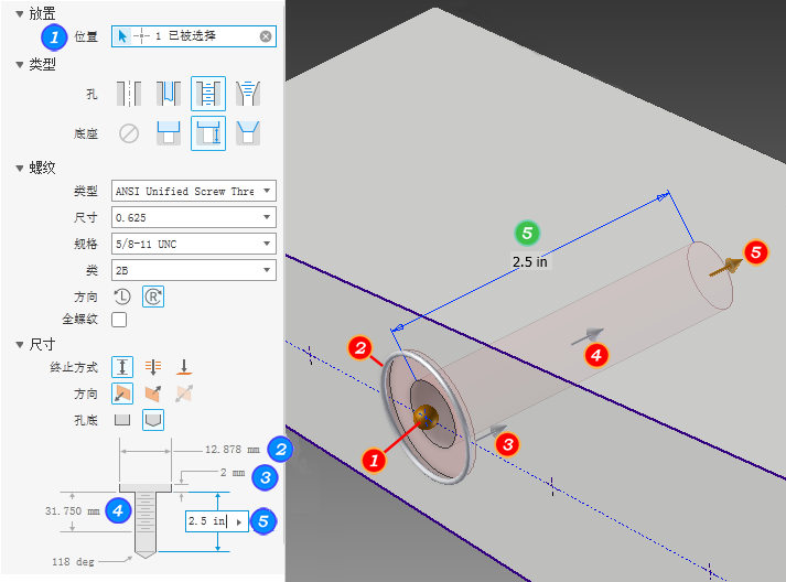 预设是预定义特征特性的集合。当选择该选项后,预设将在特性面板中填充值,以便轻松重用常用特性集。创建孔后,称为“上次使用项”的预设将列出,顾名思义,它将始终显示最近访问的特征参数。