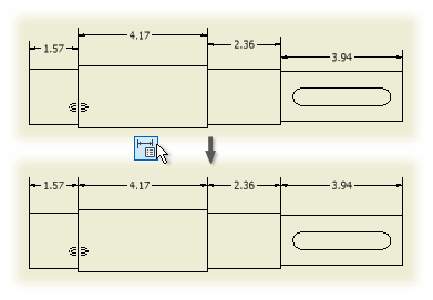 使用“连续尺寸”和“连续尺寸集”命令向工程图中添加两种类型的连续尺寸:连续尺寸集和单独的连续尺寸。