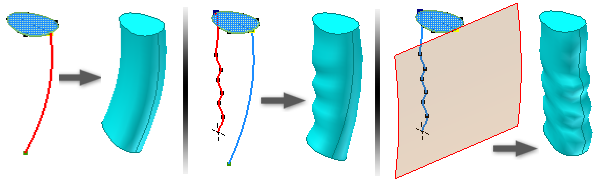 引导轨道扫掠用于具有沿某个轨迹缩放或扭曲的不相同截面轮廓的对象(例如,复杂把手)。