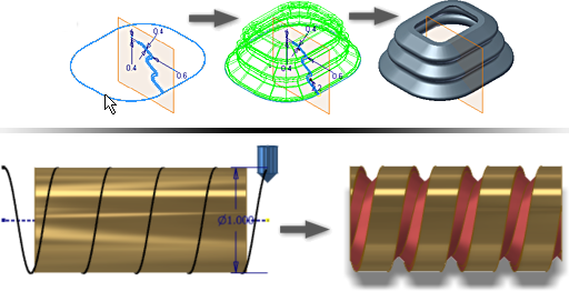 螺旋扫掠将创建基于螺旋的特征或实体,如弹簧或圆柱表面的螺纹。螺旋扫掠可以是多实体零件中的新实体。