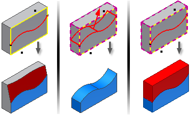 也可以使用“分割”命令在实体和曲面体上执行面分割,或者在实体上执行零件分割。
