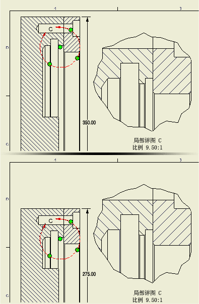 在工程图环境中,“附着”命令可以将局部视图定义与父视图关联。如果父视图几何图元的尺寸或位置关系发生改变,所附着的视图定义仍保持附着状态并随用户指定的附着顶点移动。
