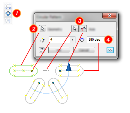 - 在“数量”字段中输入要创建的元素数,并在“角度”字段中输入第一个阵列元素与最后一个阵列元素之间的角度。
