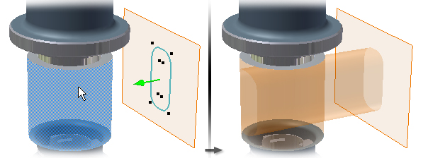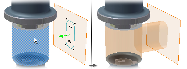 如果取消选择此选项,通过将截面轮廓的开口端延伸到零件,可以封闭开放的截面轮廓。通过将由草图平面和零件的交点定义的边包含在内,可以消除开口端之间的间隙。如同指定了闭合截面轮廓一样来创建拉伸。